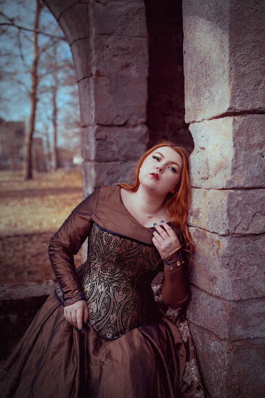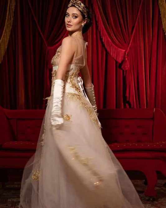Unique Pink Tulle & Golden Lace Wedding Dress "Diana"